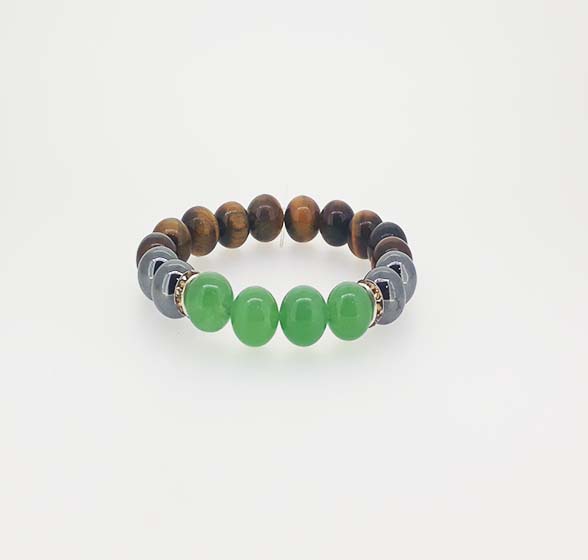 Tigers eye + Aventurine +Hematite Tigers eye-කරන ටයිගර් අයි උත්සහවන්තබව,දියුණුව ගෙන දෙන අධික කොපය දුරු කර සාමකාමි සිතුවිලි ඇති කරන ප්රභලම පාෂාණයකි.වැඩකිරීමෙදී ඇතිවන අධික ශාරීරික මානසික තෙහෙට්ටුව දුරුකර අවසානය දක්වා ප්රභොධමත්ව තබයි. Hematite-යකඩ බහුලව අන්තර්ගතවන,කාන්දම් බලයෙන් යුතු හෙමටයිට් පාෂාණය අන්යයන් ආකර්ෂණය බලවත් කරන බලගතු පාෂාණයකි.ශාරීරික ශක්තිය,ආත්ම ශක්තිය ධෙර්යය,වඩන ප්රතිශක්තිකරණ ගුණයෙන් යුතුවේ.,අස්ථි ශක්තිමත් කරයි,ක්රීඩාවෙ යෙදෙන අයට ආතරයිටීස් සන්දි රෝග ඇති අයට ඉතා ශුභයි.වයස 35 වැඩි කාන්තවන් පැලදිය යුතුම පාෂාණයකි. Aventurine-සුව කිරිමේ පාෂාණය ලෙස සලකන ග්රීන් ඇවෙන්චරින් හදවත් චක්රාව බල ගන්වමින් ස්නායු ශක්තිමත් කරන පාෂාණයයි. හදවත් රෝග ,හිරිවාත රෝග,ස්නායු රෝග,සෙම් රෝග ඇති අයට ශුභයි.