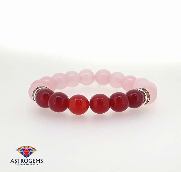 Rose Quartz+Carnelian Rose quartz-ආදරයේ,ආකර්ෂණයේ පාෂාණයයි.සෙව්වන්දි නමින් හදුන්වන මෙය සුදු පැහයට හුරු ලා රෝස පැහැයකින් යුතු,තමන්ටද අනුන්ටද ආදරයේ ආකර්ෂණය පතුරන මිත්ර හා ප්රේම සබදතා තර කරන සුන්දරත්වයේ පාෂාණයයි. Carnelian-ධෛර්යයේ පාෂාණය ලෙස සලකන,ලිoගික ශක්තිය,කායික ශක්තිය වඩන හෝමෝන අසමතුලිතතා දුරුකරන ස්ත්රී හා පුරුෂයින්ගේ ප්රජනක පද්ධති හා ක්රියාවලි පෝෂණය කරන සරාගී පාෂාණයකි.නායකත්වය,බලය,මුලිකත්වය කාර්ශුර්යත්වය කරා ඔබ ගෙනියන පාෂාණයයි.